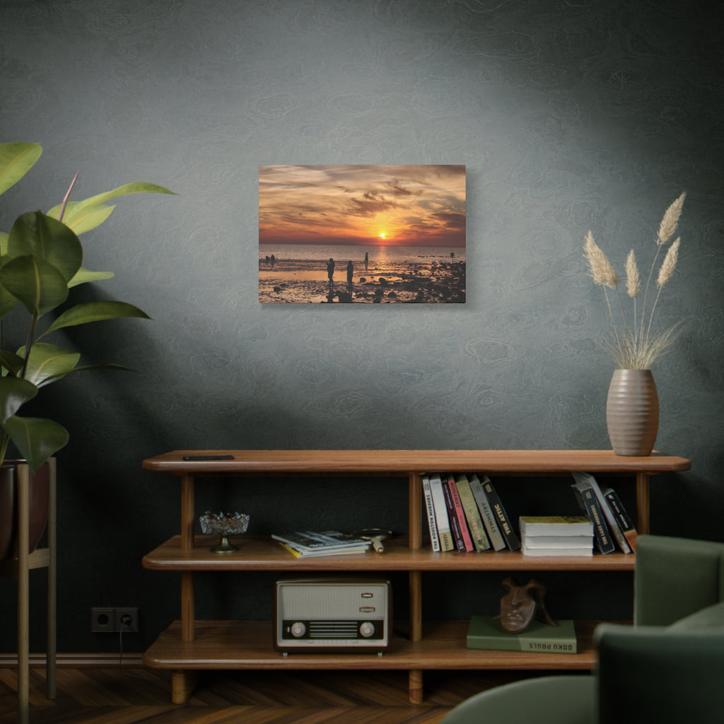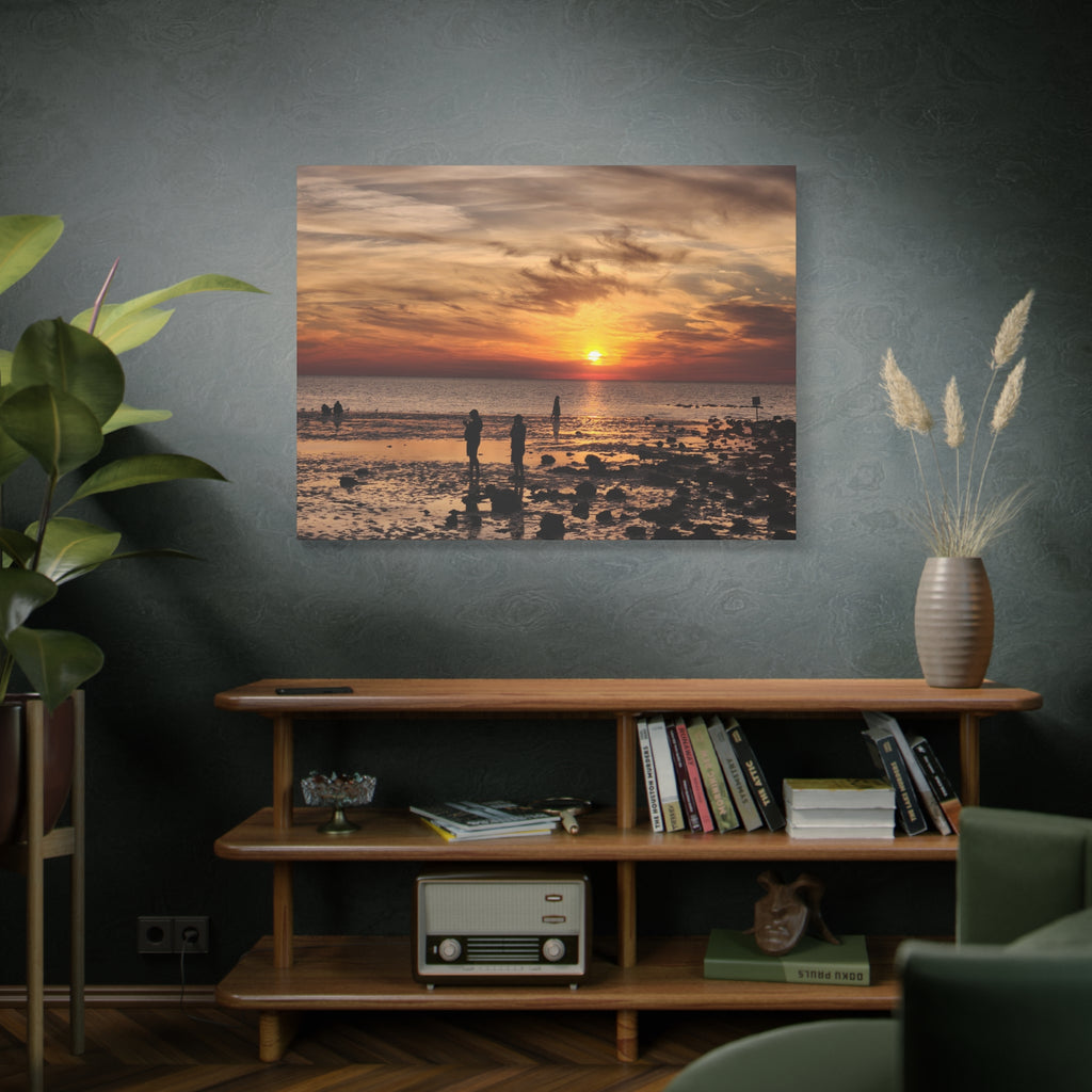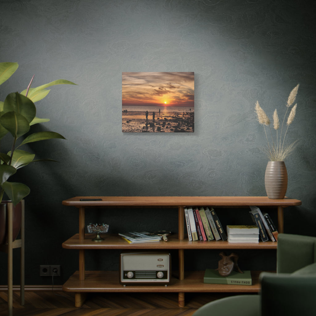 Golden light pools across weathered pilings, each post a quiet memory of tides and time. This stretched matte canvas captures a Gulf sunset with soft glow and salty hush — a piece that settles into a room like an evening breeze. Hang it above a low console, let it anchor a reading nook, or place it where you savor slow moments. The textured matte surface keeps highlights gentle and colors true, so the scene feels like a lived-in photograph rather than a glare-prone print. For someone who collects coastal evenings and calm horizons, this canvas brings that exact mood home.