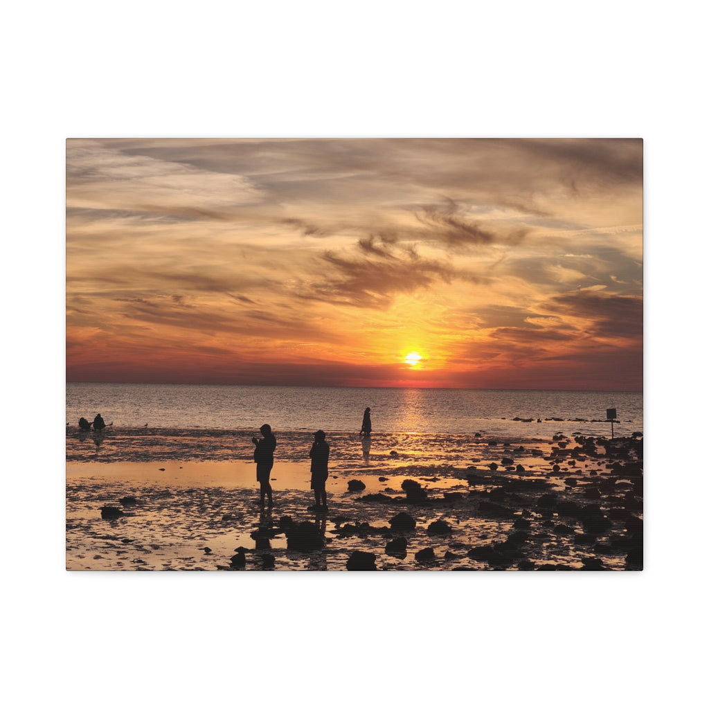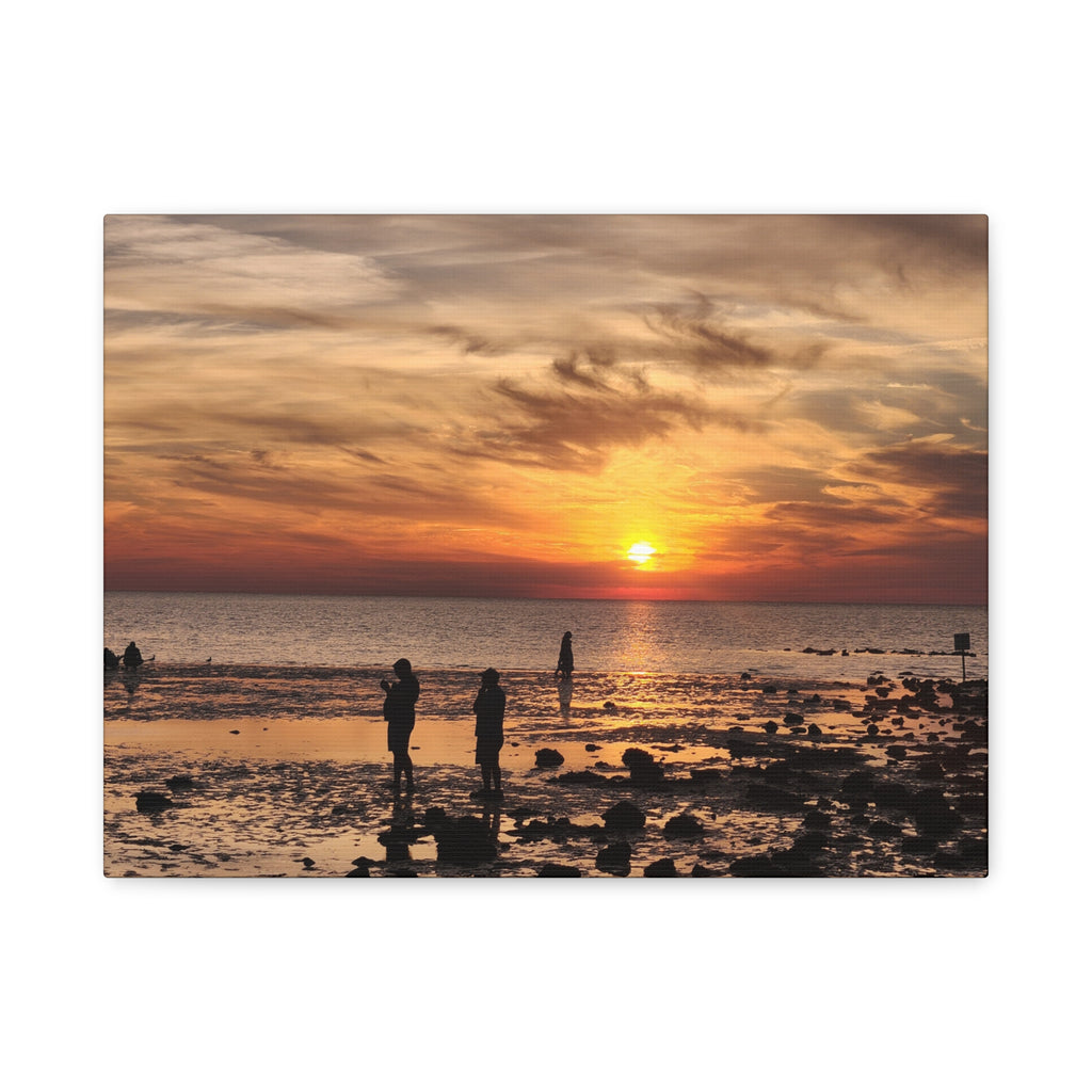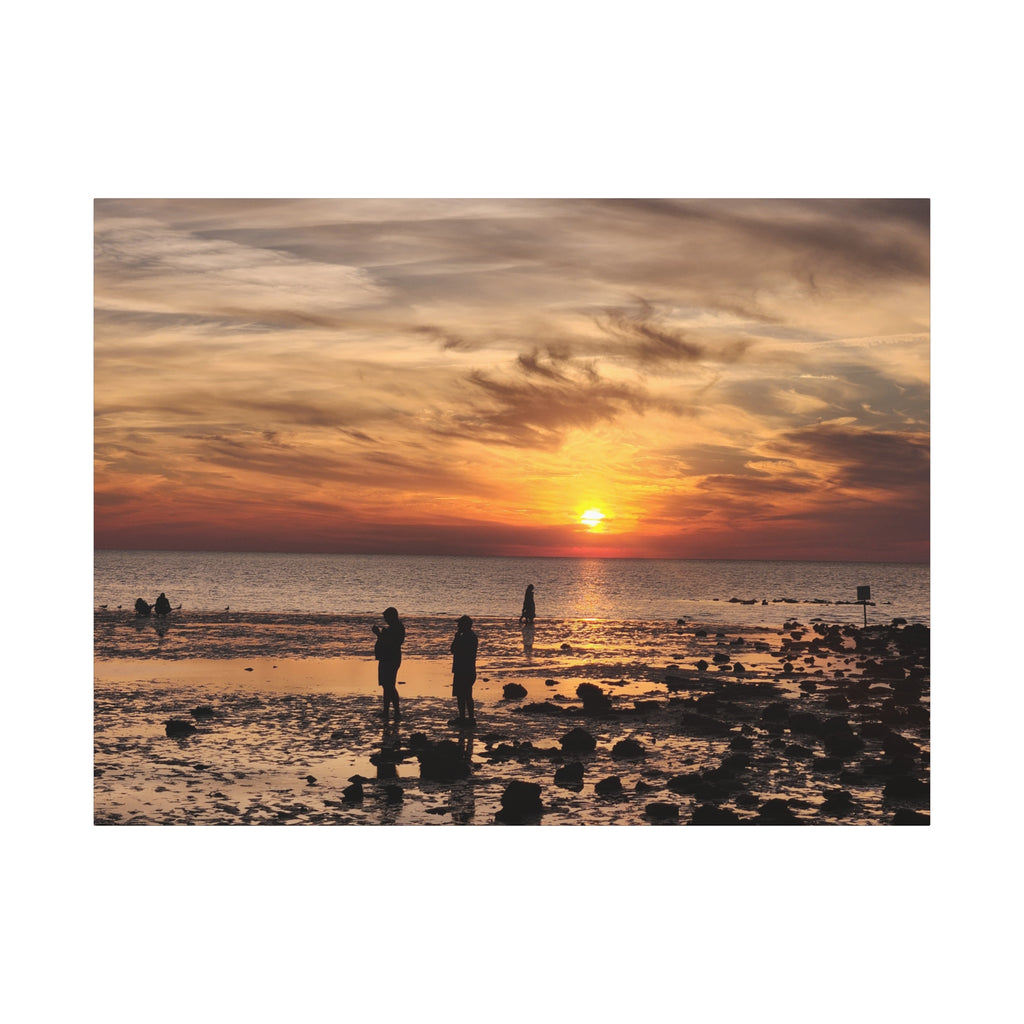Golden light pools across weathered pilings, each post a quiet memory of tides and time. This stretched matte canvas captures a Gulf sunset with soft glow and salty hush — a piece that settles into a room like an evening breeze. Hang it above a low console, let it anchor a reading nook, or place it where you savor slow moments. The textured matte surface keeps highlights gentle and colors true, so the scene feels like a lived-in photograph rather than a glare-prone print. For someone who collects coastal evenings and calm horizons, this canvas brings that exact mood home.